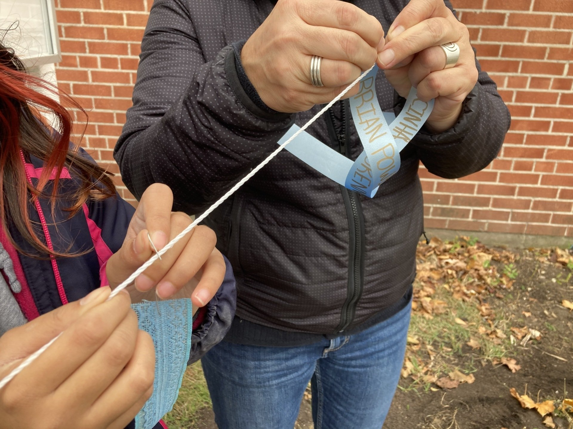Students and their teacher, MPP Bhutila Karpoche, MP Arif Virani, and many others added ribbons and words of remembrance.